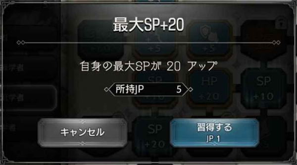 升级后可以获得JP,JP可以用来学习各种能力和技能。