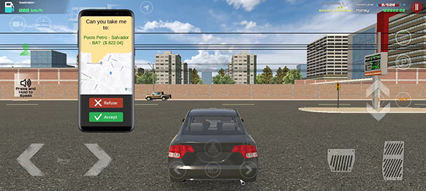 7、进入游戏后,你会接到一个任务,点击【Accept】表示同意。此时,屏幕左边的两个按钮用于控制车辆方向,右下方的两个按钮分别是刹车和油门。