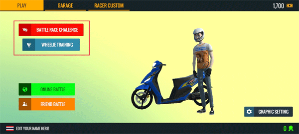 3、进入到游戏开始界面,点击中间的“START RACE”进行比赛。