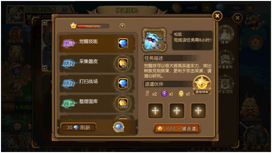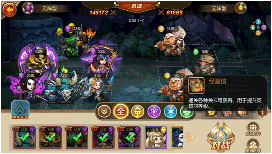 温馨提示:挂机和悬赏任务的收益,根据出战关卡来确定,关卡越高,收益也越高哦~