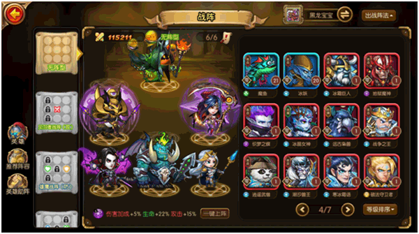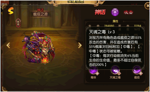 这套阵容以叠毒为主,地狱魔神为核心,地狱魔神的被动效果可以在杀敌的同时给全体队员回复大量的生命值,同时作为毒队伍的核心,对中毒效果提供大量的伤害加成;