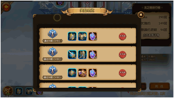 根据出战进度挂机,能获取较为丰厚的装备与各类道具。达成龙之塔达标奖励,可得到装备。此外,还能在金币商店购买装备图纸进行制作,或者参与寻宝、庄园等其他玩法活动,从中获取装备或制作装备所需的材料。而高品质装备可在“锻造”处,通过低品质装备合成得到。