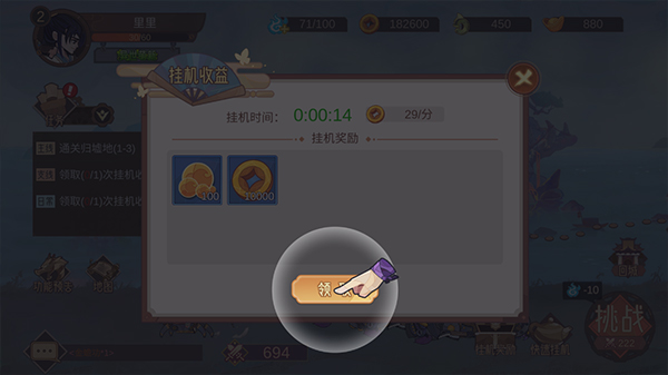 此外,新手侠客可别忘了挂机收益哦!今天的游戏攻略就讲到这儿咯!感谢各位侠客的支持~