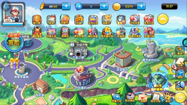 3、100%还原动漫玩法,18种属性克制,上百种特性,上千种原版特色技能,超世代进化,地图解锁应有尽有。