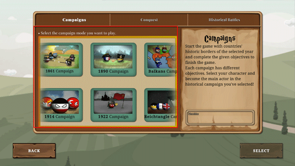4、接下来选择你想参与的活动,从国家开启游戏,选定特定年份的历史边界,并达成给定目标以完成游戏。每项活动的目标各不相同。选择你的角色,化身电影主角。随后选择游戏难易程度,点击“Play”。
