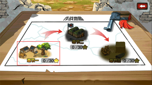 当你看到屏幕左上角血量减少时,点击急救箱就能恢复血量。同时,要依据鬼子的队伍数量,合理展开攻击。