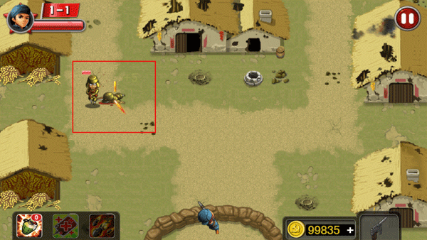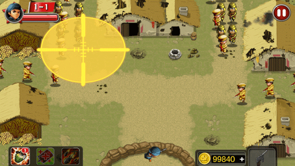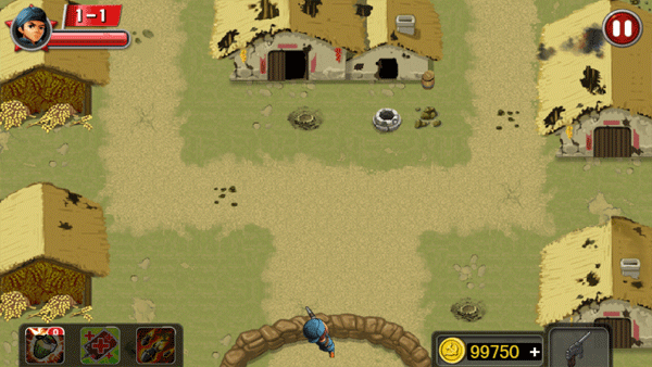 按照鬼子所在方向长按屏幕,就会触发连续的子弹攻击,而右侧的枪图标是用于切换武器的。