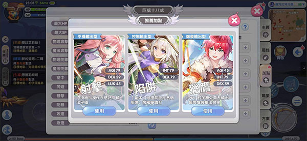 推荐加点是根据每个职业,系统推出的推荐加点方式,每个职业都拥有三种不同的加点方式。一般为挂机类,陷阱类,PK类。