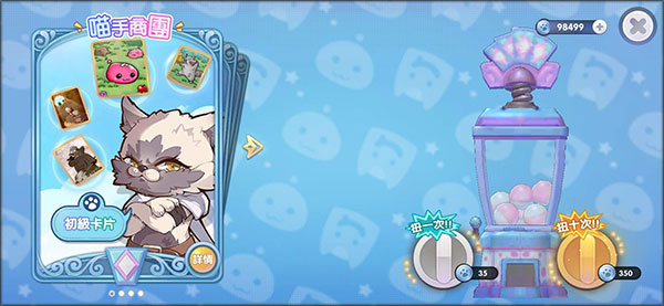 初级卡片中目前共有60种初级卡片,35个喵手商团纪念扭蛋一次,100%爆率随机获得一张初级卡片。