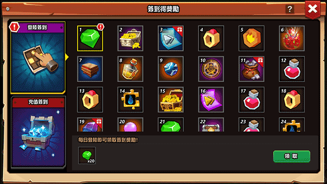 2、在每天第一次进入游戏时,玩家会获得签到奖励;