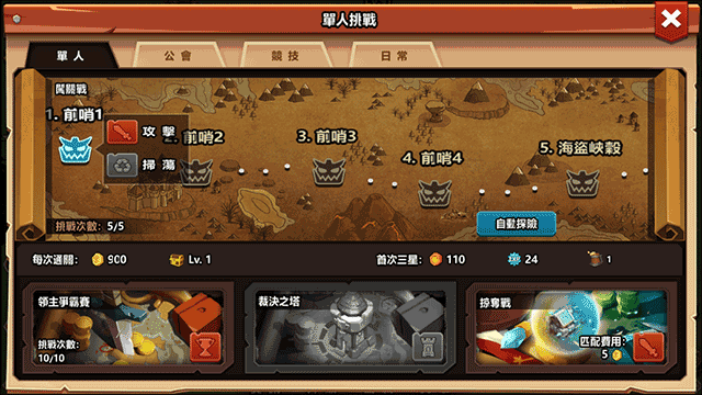 10、在单人挑战界面点击解锁的关卡进行攻击吧;