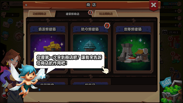 4、玩家也可以在商店中购买所需要的物资,比如资源、防守建筑、部落建筑等;