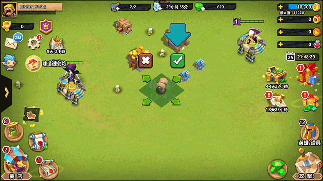 6、优先升级魔法塔、防空塔和迫地炮,其次是连射炮与箭塔。至于提供固定金钱收益的建筑,等前面这些升完后再进行升级。优先将金库升至顶级,之后雕像、连弩、磁能等建筑的升级,需依据自己英雄的守护技来决定。
