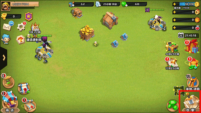 5、在你建筑工人忙的时候你也不要闲着,你可以抢钱去升级城墙,抢的钱,下线前花完,就算被人抢也不心疼。没地方花就捐公会傀儡
