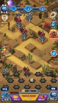 2、玩家可以合成和升级不同种类的机甲炮塔,提升防御能力和攻击力。