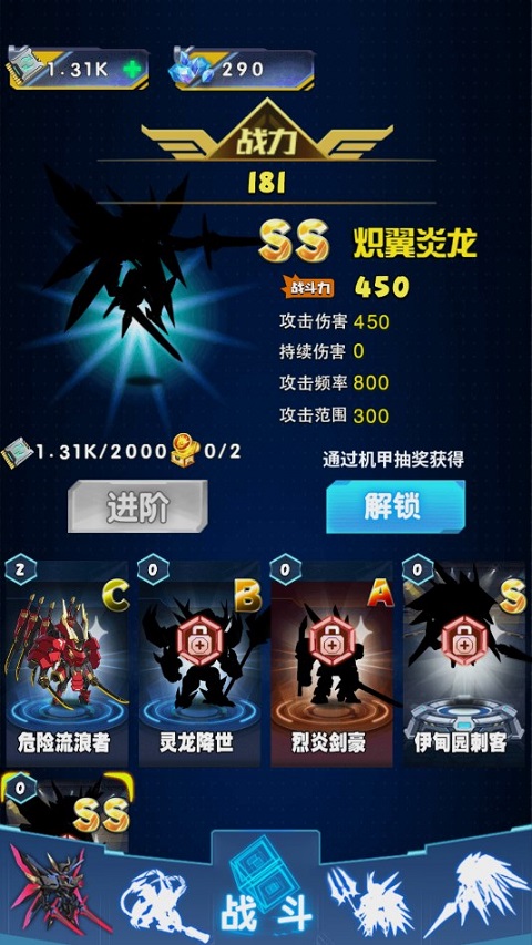 2、相同等级的机甲可以进行合成,拖动将机甲战士合成更高等级。