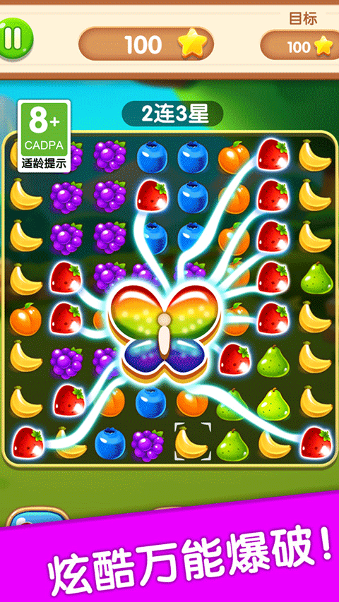 《水果消除》是一款休闲益智类的水果消除游戏,其玩法与“消除星星”相近。当水果被消除后,周边的水果会朝着一个方向聚集。这款游戏的一大亮点在于水果的样式与配色。对于一款考验眼力的游戏而言,合理的配色能让玩家在游玩过程中不会过于疲惫,《水果消除》在这方面就表现出色,玩家玩此游戏时,并不会感到十分疲惫。