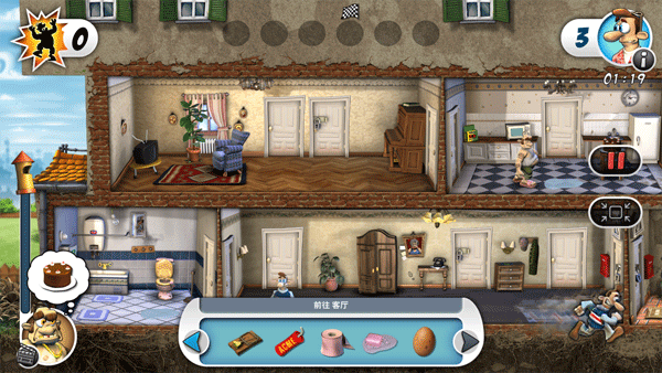 收集道具阶段:开场动画里,伍迪刚一进门,便迅速在柜子中拿到保险丝和弹珠,旋即径直前往二楼厨房。在厨房的垃圾桶内,他获取到白色的电缆。此时,邻居往三楼去了,无需理会。伍迪即刻从厨房赶到地下室,先是在工具台上拿到绿白相间的钳子,接着走到中间位置打开热气阀,随后往右关闭水闸,紧接着立刻上楼并躲进衣柜里。请务必在45秒内完成上述一系列动作,否则时间将会不足。