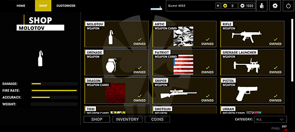 3、点击customizer进入到游戏背包,选择你需要携带的武器装备;