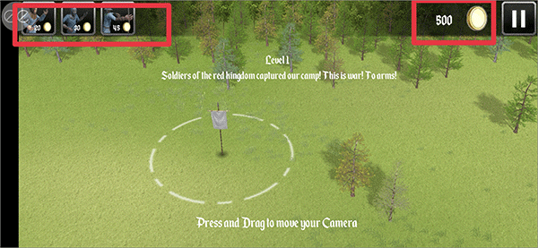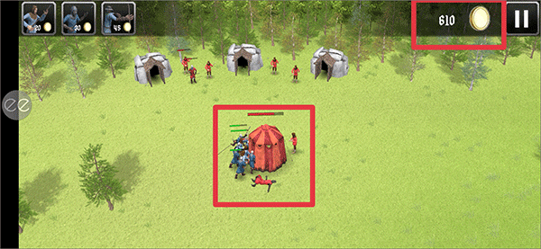 4、当成功消灭敌人或者摧毁敌人据点时,右上角的金币会持续增多。此时,玩家就能利用这些增加的金币,去购买更多的士兵。