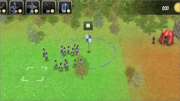 3、一旦我方士兵踏入旗帜所在的圆圈范围,旗帜便会自动转变为我方阵营的旗帜。在点击上方的开始按键之后,我方士兵就会离开圆圈,朝着敌人展开进攻。