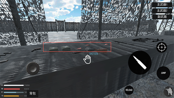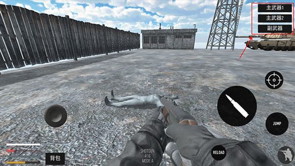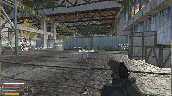 1进入游戏后,在帐篷内的桌子上,能看到摆放着许多枪支与子弹。当靠近出现手掌标识时,点击即可完成拾取。