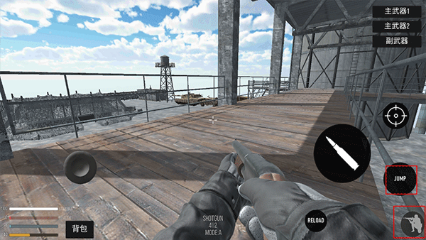 4、点击右侧的“jump”能够实现跳跃,点击人像图标则可蹲下。
