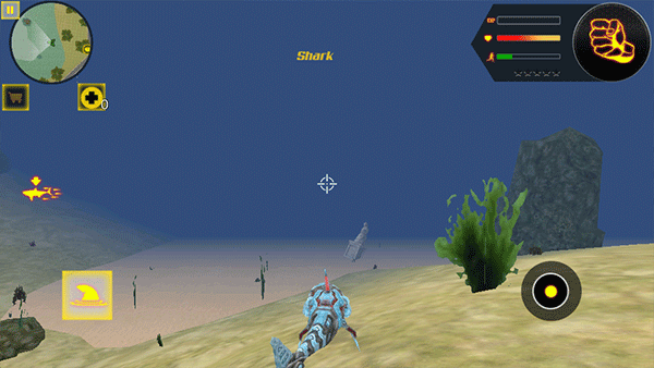 4、你的机器人可变形为具备超强动力的机器鲨鱼,于水中寻觅各类猎物的踪迹。