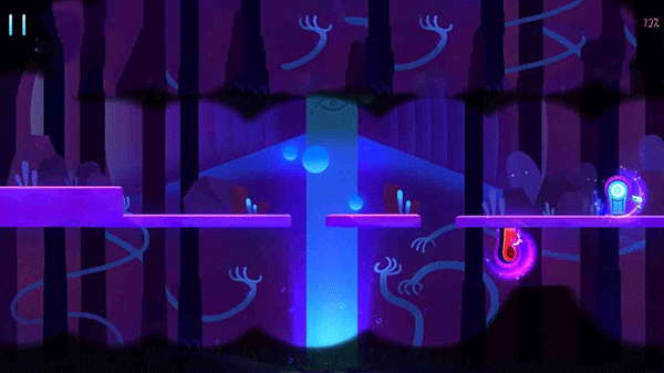 影子角色登场。此关卡纯粹是为了引入影子玩法。简单来讲,自此关起,通关要求同时穿过两扇门,其中一扇是蓝色的门,由原本的主角蓝色小人(之后我们简称为小蓝)通过;另一扇是红色的门,由影子,也就是红色小人(简称为小红)通过,并且两人只能通过各自对应的门。