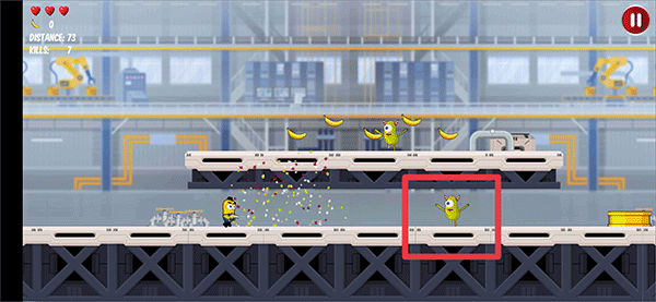 2、在小黄人前进时会出现香蕉,玩家需要操控小黄人跳跃来收集香蕉并获得分数