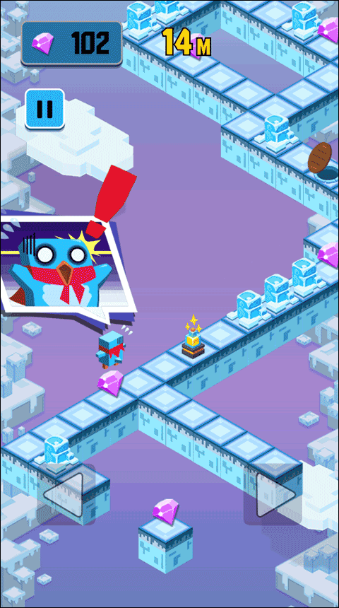 3、由于游戏没有边界的概念,很多时候后续的冰块会持续融化,因此玩家必须在紧张状态下仔细规划好每一步,否则企鹅就会掉落。