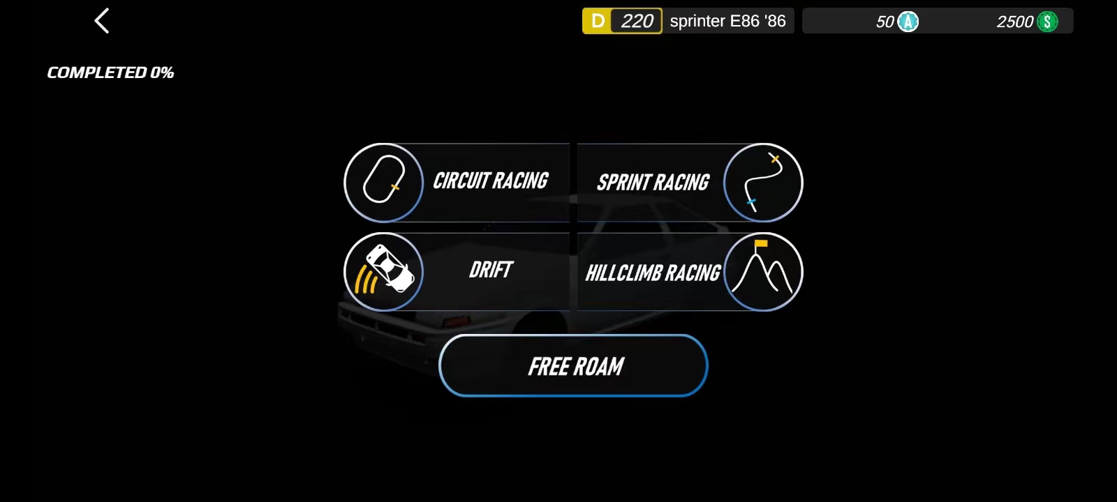 3、完成登录后,能看到诸如赛车、短跑、漂移以及爬坡比赛等游戏模式,玩家可自主挑选进行体验,在此以赛车模式为例,