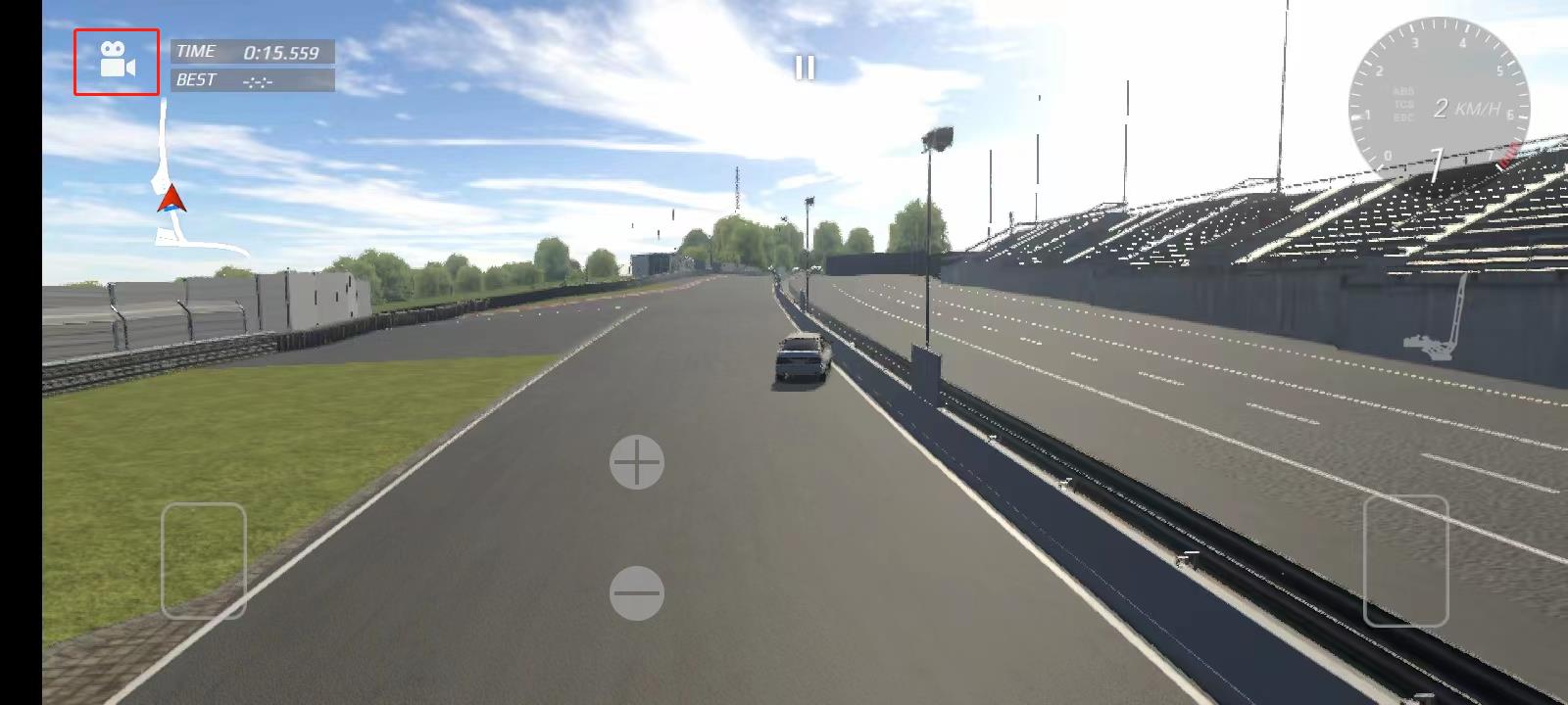 6、踏入赛道后,我们能够借助左下方的按钮来操控车辆方向,利用右边的刹车与油门按钮掌控车辆速度,还能通过摇晃手机实现遥感控制。