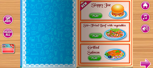 3、在这款厨房烹饪游戏里,我们为您精心准备了各式各样的食谱。您能够挑选烤制的食物,比如薯条和汉堡包、甜甜圈,也可以选择汤、肉丸意大利面、寿司、比萨饼、冰糕、蛋糕以及更多丰富的食谱!而且,大部分菜肴都能用不同的配料或玩具进行装饰。