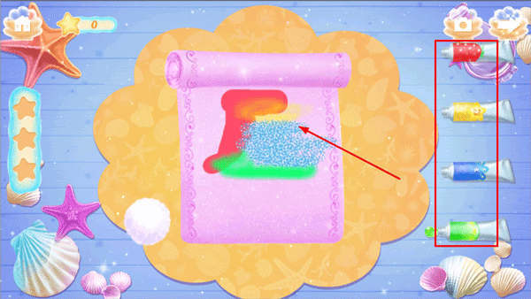 3、点击右侧颜料,然后在信纸上画画或者写字;