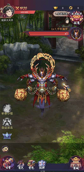 商城、挂机、驱魔,获取资源(金币!!)然后提升主角,或金币加成伙伴。再然后去推图(推荐后期主角每100级再去试,不然很磨人!)
