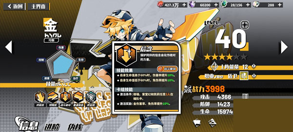 4、最后升阶之后属性的提升当然也是要比其他角色高出去不少,这几个角色都是潜力角色,但却不是零氪党的选择,因为都是前期无法满星的角色,实力不突破基本上谁都打不过。