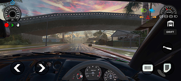 进入游戏后,你能够自由驾驶自己的车辆。其中,左边的两个键位用于控制方向,右下角的两个键位分别是刹车键和车辆行驶键。