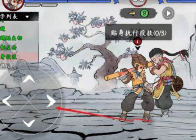 1、首先你点击近身投技,看一下按键式左方向键和B键。