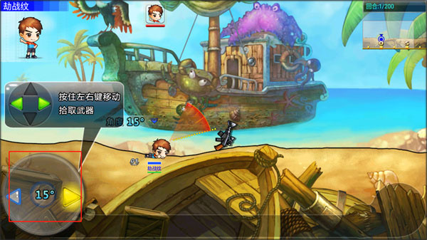 2、通关窍门:第一步与蓝魔弟弟展开对战,发射角度保持在30度上下,力度需达到45力及以上,接着集中火力进行攻击,只要锁定BOSS位置,就直接全力攻击,非常简单~