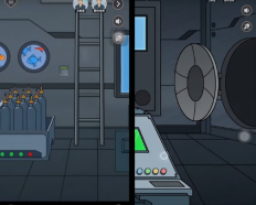 4、左边的鱼板块与右边的鱼颜色数量联系起来,得到密码牌密码2241,救生梯出现;