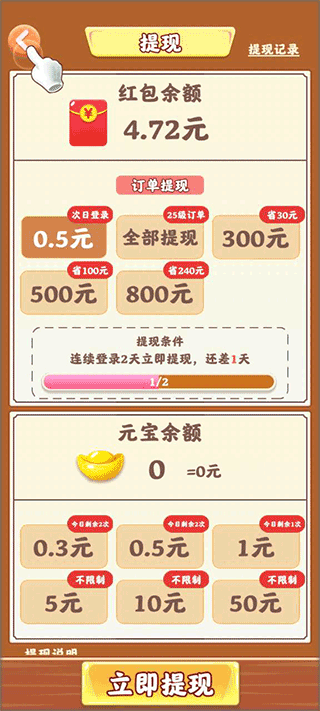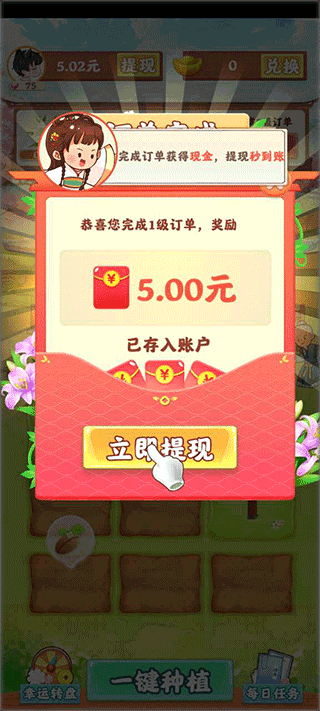 梦幻人生红包版,一款独具特色的古风经营赚钱手游。游戏融合古风与卡通画风,生动形象,带你沉浸式体验田园生活。在游戏里,玩家能够种植各式各样的瓜果蔬菜,通过完成订单获取收益。不仅如此,游戏还支持离线挂机,让你自由分配时间。有趣的经营玩法,定会让你深陷其中、欲罢不能。更有海量现金红包等你来拿,让你在享受田园之乐的同时轻松赚钱,这不就是梦寐以求的梦幻人生嘛!感兴趣的小伙伴,别再犹豫,赶紧下载体验吧!
