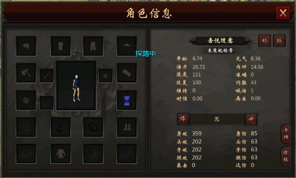 打开角色面板,就可以看到玩家自身的人物信息面板了。