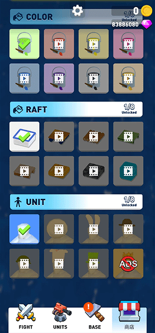 3、点击“base”,搭建更大的木筏以容纳更多人。