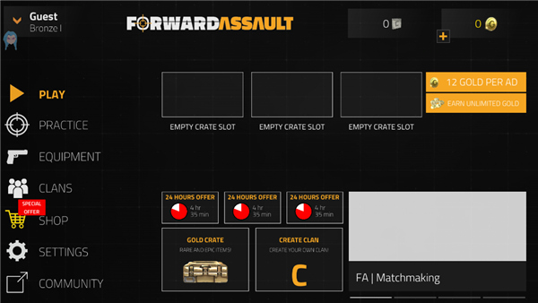 同时,前锋突袭这款游戏的玩法,和平时玩的枪战游戏有几分相似。玩过CS或者CF的玩家,在这款游戏里能找到熟悉的感觉。该游戏支持实时联机枪战,对战大厅里玩家可以自行创建房间号,后续还会推出排位系统。它的射击感强烈,准星射击计算精准,打中头部就会爆头。要是觉得自己技术欠佳,不妨选择机器人对战,其机器人机制相当不错,非常适合新手练习枪战。在机器人房间里,你可以轻松完虐机器人,体验一把“虐菜”的快感。