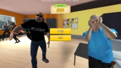 4、这时会有难听的音乐声传来,你要朝着音乐符号的邻居门走去,走到门口按门铃,进去之后点击左方的咒骂按钮,警告他们,随后回到住处,结果他们还是那么的吵闹。