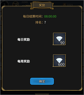 4、每天将根据竞技场的积分排名,为竞技场玩家发放排名奖励。