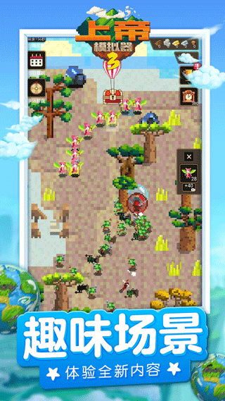 相当简单,玩家在其中扮演上帝这一角色。凭借至高无上的上帝之力,去创造并构建专属于你的世界。你能够借助强大的元素力量与道具,塑造出如同中国一般的世界版图,像模拟火山喷发、海啸等场景,依靠这些超自然力量打造出美轮美奂的版图。此外,《上帝模拟器3》最新版本增添了战斗玩法。在游戏里,你能够尽情创造各类物种展开战斗,像人类、精灵、矮人、兽人等形形色色的生物皆可。单就这种创造性的战斗玩法而言,就极具新颖性。也正因它具备多元素的优势,得以在众多类型的游戏中崭露头角,深受广大玩家喜爱。感兴趣的朋友赶紧来下载体验一番吧。