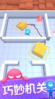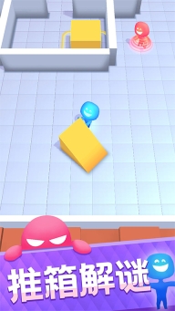 这款游戏有着可爱的画风,属于动画风格类型。玩家开启游戏时,是以俯视角状态进行。只需用手指朝着期望的方向推动,玩家所操控的角色就能移动。每一关都设有时间限制,在限制时间到期之前,玩家操控的小人要推动箱子到指定位置,通过封堵路口来躲避抓捕。这么有趣的游戏,感兴趣的小伙伴们可一定要来下载体验一番呀!