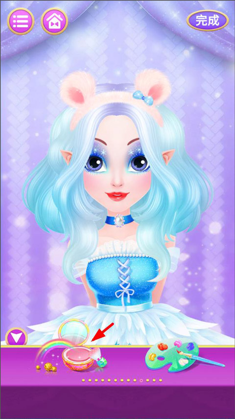 3、发型设计好之后,玩家开始给公主化妆,从眉毛、眼妆开始,然后是口红、腮红等;